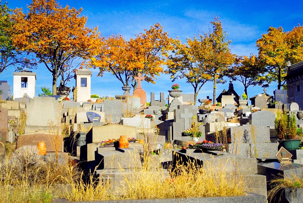 Interestingly, French cemeteries are often known for their "mineral" character—without trees or much greenery.