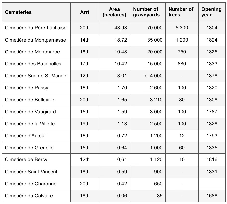 Paris is home to fourteen municipal cemeteries, covering a total of over 400 hectares.